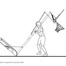 • Black bracket behind backboard. Using a broomstick or pole the user pushes up on back of rim to increase the height up to standard 10’. Using a broomstick user pushes behind the board to lower the goal down to 8’.